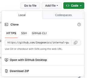 Navigate to the main ("<> Code") page of your repository and click the green button at the top right corner (as shown below) and copy the link (for command line) or select "Open with GitHub Desktop". For command line interaction, navigate within the bash