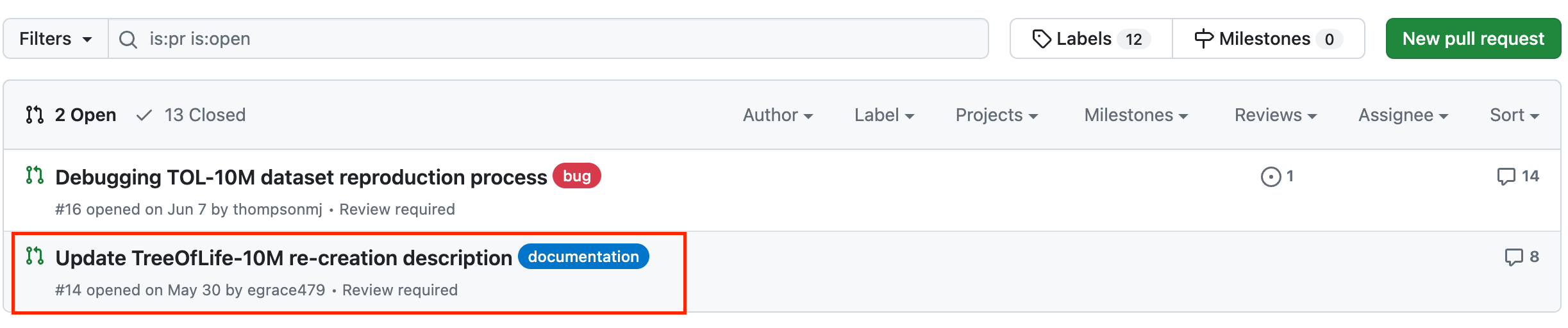 2.2 Select a Pull Request¶
