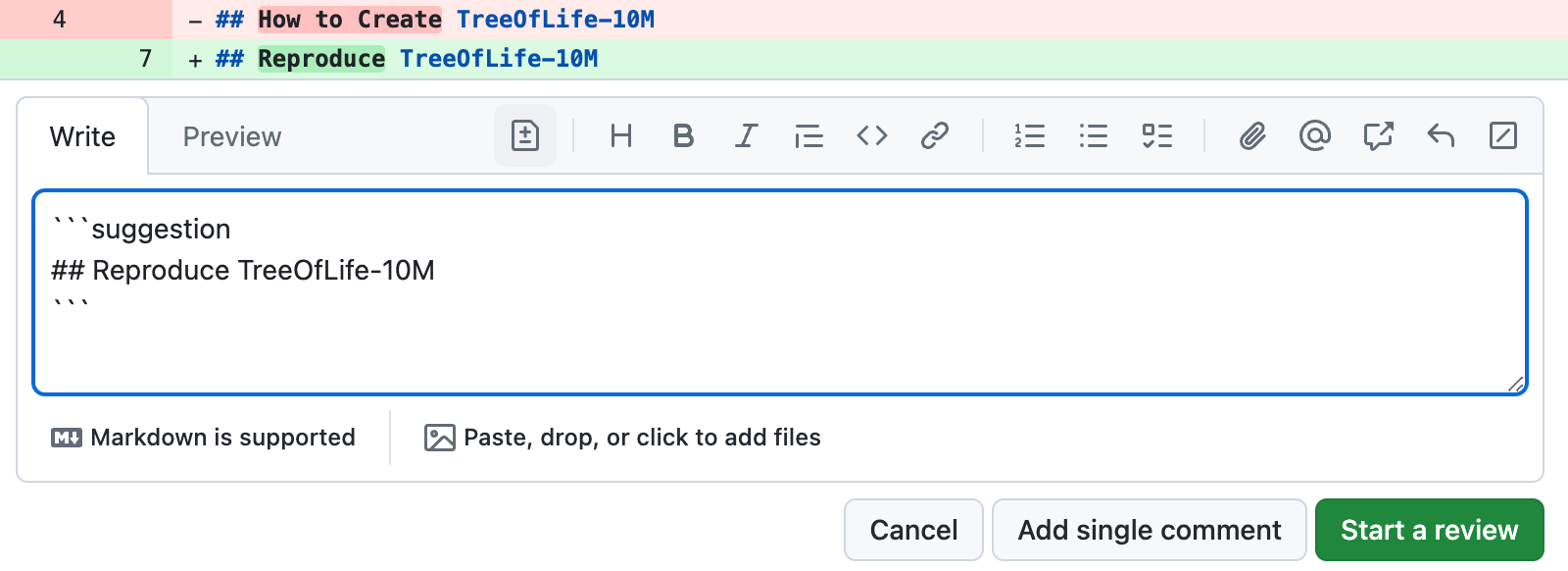 If you'd like to suggest a specific change to the lines, click , and then edit the text within the suggestion block.