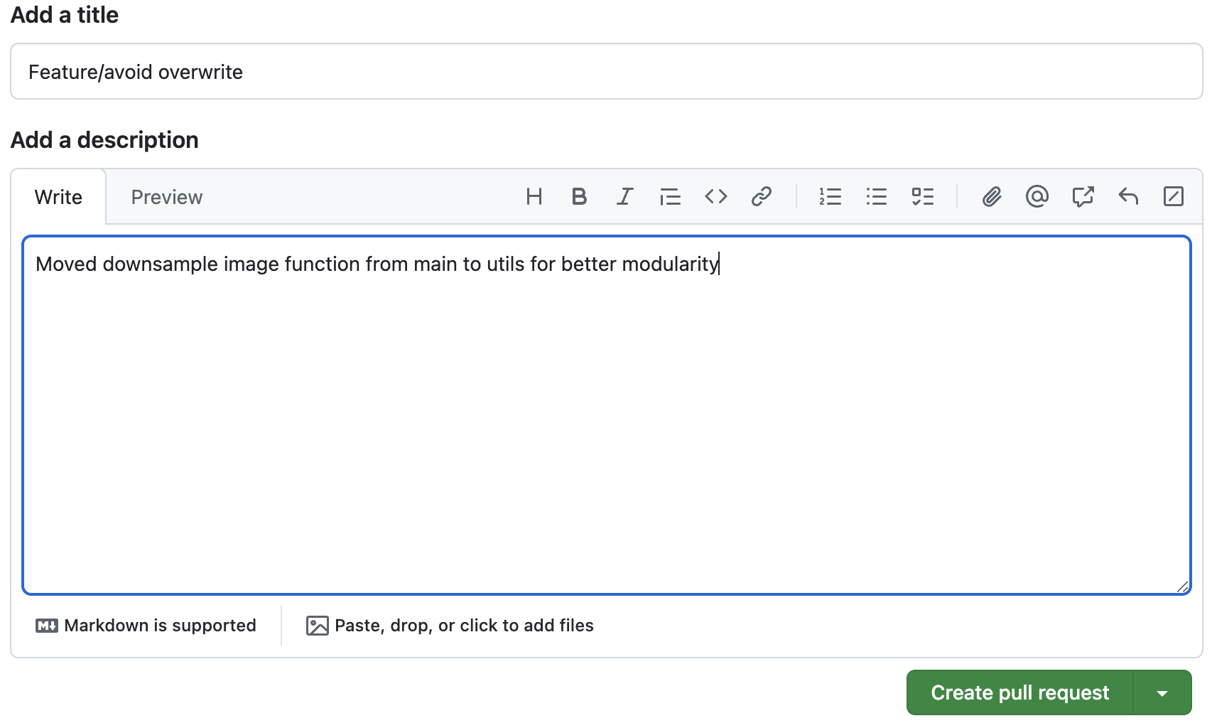 In the pull request form, type a descriptive title for your PR. Provide a detailed description of the changes you've made, why they are important, and any other relevant information.