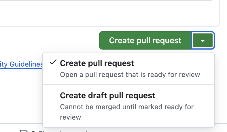 - If you want to create a draft version of the pull request for further work before it's ready for others to review, click the drop-down and select Create Draft Pull Request, then click Draft Pull Request.